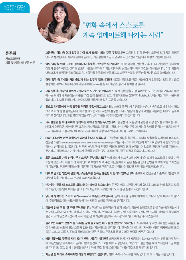½Ã½ºÄڴ ƯÈ÷ AI¸¦ Á߽ɿ¡ µÐ ÀÎÇÁ¶ó Àü·«¿¡ ÁÖ·ÂÇϰí ÀÖ´Ù. È®Àå °¡´ÉÇÏ°í ¾ÈÀüÇϸç ÅëÇÕµÈ ÀÎÇÁ¶ó¿Í ¿î¿µÀ» Áö¿øÇÏ´Â 'AI ·¹µð µ¥ÀÌÅͼ¾ÅÍAI-ready Data centers'¸¦ ºñ·ÔÇØ, »ç¶÷µéÀÌ ÀÏÇÏ´Â ¸ðµç Àå¼Ò¿¡ ¸ôÀÔÇü Çù¾÷ °æÇèÀ» Á¦°øÇØ ¾÷¹« °ø°£À» Çö´ëÈÇÏ´Â '¹Ì·¡ÁöÇâÀû ¾÷¹« °ø°£Future-proofed workplace', µðÁöÅРȯ°æ¿¡¼ÀÇ À§±â¸¦ °ü¸®ÇÏ¸ç Æ÷°ýÀûÀÎ º¸¾È, º¸Áõ, °¡½Ã¼ºÀ» Àü ¿µ¿ª¿¡¼ Á¦°øÇÏ´Â 'µðÁöÅРȸº¹Åº·Â¼ºDigital Resilience' °È¸¦ ÅëÇØ ±â¾÷ÀÇ »ý»ê¼ºÀ» °ÈÇÏ´Â µ¥ ÃÊÁ¡À» ¸ÂÃß°í ÀÖ´Ù. ´Ü¼øÇÑ ³×Æ®¿öÅ© ¿¬°áÀ» ³Ñ¾î, AI ½Ã´ë¿¡ ±â¾÷ÀÌ ¾ÈÁ¤ÀûÀ¸·Î ¿î¿µµÇ°í ¼ºÀåÇÒ ¼ö ÀÖ´Â ±â¹ÝÀ» Á¦°øÇϰڴٴ Àü·«ÀÌ´Ù. ·ùÁÖÈñ ½Ã½ºÄÚÄÚ¸®¾Æ ÇÇÇà ¹× Ä¿¹Â´ÏƼ ºÎ¹® »ó¹«´Â "½Ã½ºÄÚ°¡ AI ±â¾÷À¸·Î ¹ßµ¸¿òÇÏ´Â °úÁ¤¿¡¼ ÇÇÇà ¹× Ä¿¹Â´ÏƼ ºÎ¹®ÀÌÇÏ 'P&C' ¿ª½Ã ºñÁî´Ï½º º¯È¸¦ ¸é¹ÐÈ÷ ÀÌÇØÇϰí, Çö¾÷°ú È帧À» °°ÀÌ ÇϰíÀÚ ÇÑ´Ù"¸ç "À̸¦ À§ÇØ ¿ÃÇØ ¡ãAI¿¡ ±â¹ÝÇÑ P&CAI Powered P&C ¡ãÀÏÀ» Àç¼³°èÇϰí, ±×¿¡ ¸Â´Â ¸®´õ½Ê ±âÁØ ÀçÁ¤¸³Rethink Work and Define Leadership ¡ãº»ÁúÀ» ³õÄ¡Áö ¾Ê´Â P&CP&C Always One¶ó´Â ¼¼ °¡Áö ¿ì¼±¼øÀ§¸¦ Á¤ÇÏ°í ½ÇÇà¿¡ ¹ÚÂ÷¸¦ °¡Çϰí ÀÖ´Ù"°í ÀüÇß´Ù. ![]() P&CºÎÅÍ ½ÃÀÛÇÏ´Â AI Çõ½Å AI ±â¾÷À¸·ÎÀÇ º¯È¿¡ °É¸Â°Ô ½Ã½ºÄÚ´Â ºñÁî´Ï½º»Ó¸¸ ¾Æ´Ï¶ó, HR ¿µ¿ª¿¡µµ AI¸¦ Àû±Ø µµÀÔÇϸç Á¶Á÷ ¿î¿µ ¹æ½ÄÀ» Çõ½ÅÇϰí ÀÖ´Ù. ÇÙ½ÉÀº AI¿¡ ±â¹ÝÇÑ ´Ù¾çÇÑ Ç÷§ÆûÀ» ÅëÇØ HR ¾÷¹«¸¦ È¿À²ÈÇϰí, ±¸¼º¿ø ¸ðµÎ°¡ AI¸¦ Ȱ¿ëÇÒ ¼ö Àִ ȯ°æÀ» ¸¸µå´Â °ÍÀÌ´Ù. À̸¦ À§ÇØ ½Ã½ºÄÚ¿¡¼´Â Àڻ翡¼ °³¹ßÇÑ »ç³»¿ë AI ÅøÀÎ '½áŶCircuit' ³»¿¡ 'P&C ¿¡ÀÌÀüÆ®'¸¦ º°µµ·Î ±¸Ãà, ±¸¼º¿øµéÀÌ HR°ú °ü·ÃµÈ ±Ã±ÝÁõÀ» ¸ÂÃãÇüÀ¸·Î ÇØ¼ÒÇÒ ¼ö ÀÖµµ·Ï Çß´Ù. º°µµÀÇ ÁöÁ¤ ¾øÀÌ ½áŶ¿¡¼¸¸ °Ë»öÇÏ¸é º¸ÆíÀûÀÎ °Ë»ö °á°úµéÀÌ ³ª¿ÀÁö¸¸, P&C ¿¡ÀÌÀüÆ®¸¦ ÄÒ Ã¤·Î °Ë»öÇϸé ÈÞ°¡ »ç¿ë¿¡ ´ëÇÑ Á¤º¸, °æÁ¶»ç, ÀÎ»ç °ü·Ã ¼·ù µî ½Ã½ºÄÚ¿¡ Æ¯ÈµÈ HR Á¤º¸¸¦ ¾òÀ» ¼ö ÀÖ´Ù. ä¿ë °úÁ¤¿¡µµ AI¸¦ µµÀÔÇØ 'ä¿ë ÃÖÀûÈ ÇÁ·ÎÁ§Æ®'¸¦ ÁøÇà ÁßÀÌ´Ù. ä¿ë °ø°í ÀÛ¼º, ÀÎÅͺä, ¿Âº¸µù µî HR Àü¹Ý¿¡ °ÉÃÄ AI¸¦ Ȱ¿ëÇØ º¸´Ù È¿À²ÀûÀ¸·Î ä¿ëÀ» ÁøÇàÇÒ ¼ö ÀÖµµ·Ï Çß´Ù. À̸¦Å×¸é ¸ðÁý °ø°í¸¦ ³¾ ¶§ Àâ ¾ÆÅ°ÅØÃ³Job Architecture¿¡ ±â¹ÝÇÑ ½ºÅ³À» ÀÚµ¿À¸·Î ºÒ·¯¿Ã ¼ö ÀÖµµ·Ï ÇѴٰųª, ½Ã½ºÄÚ ÀÎÀç»ó¿¡ ¸ÂÃá Ç¥ÁØÈµÈ ÀÎÅͺä Áú¹®°ú Á÷±ºº° Áú¹®À» AI¿¡ µî·ÏÇØ ¸éÁ¢°üµéÀÌ Âü°íÇÒ ¼ö ÀÖµµ·Ï ÇÏ´Â °ÍÀÌ´Ù. »Ó¸¸ ¾Æ´Ï¶ó ¹Ý±âº°·Î ÁøÇàµÇ´Â ¼º°ú ¸®ºä °úÁ¤¿¡µµ ½áŶ Ȱ¿ëÀ» µ¶·ÁÇϰí ÀÖ´Ù. ½Ã½ºÄÚ¿¡¼´Â ¸ÅÁÖ ¸®´õ¿Í ±¸¼º¿øµéÀÌ À§Å¬¸® üũÀÎÀ» ÅëÇØ ¸ñÇ¥¸¦ ¾ó¶óÀÎÇϸç, ¹Ý±âº°·Î ¼º°ú ¸®ºä¸¦ ÁøÇàÇÑ´Ù. ¼º°ú ¸®ºä¿¡¼´Â ±¸¼º¿ø °³°³ÀÎÀÌ ³½ ¼º°ú»Ó¸¸ ¾Æ´Ï¶ó ¼ºÀå °èȹµµ ÇÔ²² ³íÀÇÇϱ⠶§¹®¿¡ ¸®´õ¿Í ±¸¼º¿øÀÌ ÇÔ²² ³ª´©´Â Çǵå¹éÀÌ ¹«¾ùº¸´Ù Áß¿äÇÑ ¿ªÇÒÀ» Çϴµ¥, AI´Â ÀÌ °úÁ¤À» ´õ¿í È¿À²ÀûÀ̸鼵µ ÀÇ¹Ì ÀÖ´Â ½Ã°£À¸·Î ¸¸µé¾ú´Ù. À§Å¬¸® üũÀο¡ 6°³¿ù µ¿¾È ±â·ÏÇß´ø ³»¿ë°ú Áö³ ¼º°ú ¸®ºä °á°ú ³»¿ëÀ» ÃßÃâÇØ ½áŶ ³» 'P&C ¿¡ÀÌÀüÆ®'¸¦ Ȱ¼ºÈÇÏ°í ¾÷·ÎµåÇÑ ÈÄ °¡À̵å·Î Á¦½ÃµÈ ÇÁ·ÒÇÁÆ®¸¦ ÀÔ·ÂÇϸé, AI°¡ ´©ÀûµÈ µ¥ÀÌÅ͸¦ ÅëÇØ ±¸¼º¿øÀÇ ¼º°ú ¸®ºä ÀÛ¼ºÀ» µ½´Â´Ù. 6°³¿ù Àü¿¡ ÇØ´ç ±¸¼º¿øÀÌ ¼öÇàÇÏ·Á ÇÑ ¸ñÇ¥¿Í ½ÇÁ¦·Î ¼öÇàÇÑ ¾÷¹«¸¦ ºñ±³ÇØ Á¤¸®ÇØÁÖ´Â ½ÄÀÌ´Ù. ¶ÇÇÑ ¸®´õ°¡ ±¸¼º¿ø°úÀÇ ¿ø¿Â¿ø¿¡ ¾Õ¼ Á÷¿øÀÌ ÀÔ·ÂÇÑ ¼º°ú ¸®ºä ³»¿ëÀ» ÃßÃâÇØ Á÷±Þº° ±â´ëÄ¡¿¡ ´ëÇÑ °¡ÀÌµå ³»¿ëÀ» ¾÷·ÎµåÇϰí ÇÁ·ÒÇÁÆ®¸¦ ÀÔ·ÂÇϸé, AI°¡ ÇØ´ç ±¸¼º¿øÀÌ Á÷±Þ ·¹º§¿¡ ºÎÇÕÇÏ´Â ¼º°ú¸¦ ³Â´ÂÁö Âü°í¿ë °¡À̵å¿Í ÀλçÀÌÆ®¸¦ Á¦°øÇÑ´Ù. üũÀÎÀ» ÅëÇØ ±â·ÏÇÑ µ¥ÀÌÅͰ¡ µðÅ×ÀÏÇÒ¼ö·Ï º¸´Ù °³ÀÎÈµÈ ¿ø¿Â¿ø ÁøÇàÀÌ °¡´ÉÇØÁö°í, ¼º°ú ¸®ºä¿¡¼µµ ´õ Á¤È®ÇÑ °á±£°ªÀ» µµÃâÇØ ³¾ ¼ö Àֱ⠶§¹®¿¡ ±¸¼º¿ø°ú ¸®´õ ¸ðµÎ ´õ ¿½ÉÈ÷ üũÀο¡ Âü¿©ÇÏ°Ô µÇ°í, ´©¶ô ¾ø´Â ¼º°ú °ËÁõÀÌ °¡´ÉÇØÁø´Ù. ÀÌ¿Í ÇÔ²² ½Ã½ºÄÚ´Â ÆÀ ºôµù°ú ±¸¼º¿ø Âü¿© Ȱµ¿¿¡µµ AI¸¦ Àû¿ëÇϰí ÀÖ´Ù. °¡Àå ´ëÇ¥ÀûÀÎ »ç·Ê´Â ½Ã½ºÄÚ ±Û·Î¹ú P&C Á¶Á÷ÀÇ ÆÀ ºôµù ÇÁ·Î±×·¥ÀÌ´Ù. ÃÖ±Ù¿¡´Â °¢±¹¿¡¼ ±Ù¹«ÇÏ´Â HR´ã´çÀÚµéÀÌ ¿Â¶óÀο¡¼ ¸ð¿© AI¸¦ Ȱ¿ëÇÑ ¹Ì½ºÅ͸® ÆÛÁñ ÆÀ Ȱµ¿À» ÁøÇàÇߴµ¥, À̸¦ ÅëÇØ AI Ȱ¿ë °æÇèÀ» ÀÚ¿¬½º·´°Ô üÇèÇϸç Çõ½ÅÀû »ç°í¿Í 