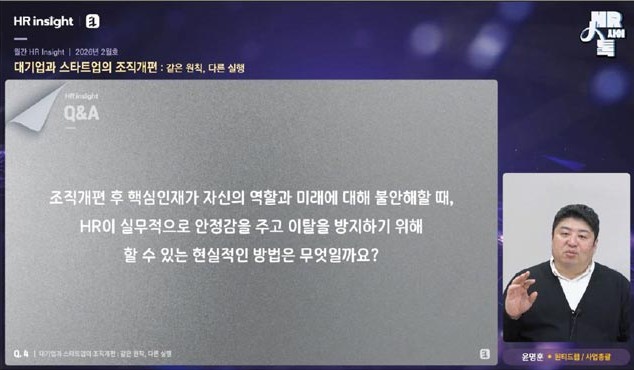 HR Insight¿Í Áß¾Ó°æÁ¦±³À°¿øÀº 2¿ù 12ÀÏ 'HRìÑ»çÀÌÅå' 2ȸÂ÷ ¿þºñ³ª¸¦ ÁøÇàÇß´Ù. HRìÑ»çÀÌÅåÀº ƯÁý ÇÊÁø°ú ¿¬°£ ±¸µ¶ÀÚ°¡ Á÷Á¢ ¼ÒÅëÇÏ´Â ¿ù°£ ¿þºñ³ª·Î, µ¶ÀÚµéÀÇ Áú¹®À» Áß½ÉÀ¸·Î ½Ç¹« Àû¿ë ¹æ¾ÈÀ» ³íÀÇÇÏ´Â ÀÚ¸®´Ù. À̳¯ ¿þºñ³ª¿¡¼´Â À±¸íÈÆ ¿øÆ¼µå·¦ »ç¾÷ÃѰýÀÌ ¿¬»ç·Î ³ª¼, 2¿ùÈ£ ƯÁý ¾ÆÆ¼Å¬ÀÎ '´ë±â¾÷°ú ½ºÅ¸Æ®¾÷ÀÇ Á¶Á÷°³Æí : °°Àº ¿øÄ¢, ´Ù¸¥ ½ÇÇà'¿¡¼ ´Ù·é ³»¿ë¿¡ ´õÇØ Á¶Á÷°³Æí ½ÇÇà ¸Æ¶ô°ú »ç·Ê¸¦ °øÀ¯Çß´Ù. À±¸íÈÆ ÃѰýÀº Á¶Á÷°³ÆíÀ» Á¶Á÷µµ º¯°æÀÌ ¾Æ´Ñ Àü·« ½ÇÇàÀ» À§ÇÑ ¿î¿µ ½Ã½ºÅÛ Àç¼³°è·Î ±ÔÁ¤Çϸç, ´ë±â¾÷°ú ½ºÅ¸Æ®¾÷ÀÌ °°Àº ¿øÄ¢, ´Ù¸¥ Á¶°Ç ¾Æ·¡¿¡¼ À̸¦ ½ÇÇàÇÑ´Ù´Â Á¡À» ¿©·¯ »ç·Ê¿Í ÇÔ²² ¼³¸íÇß´Ù. »çÀüÁú¹®¿¡ ´ëÇÑ ÁúÀÇÀÀ´äµµ À̾îÁ³´Ù. '±âÁ¸ CDP Ç÷£, 9Box, ¿ø¿Â¿ø µî Á¦µµ¿¡ ´ëÇÑ °æ¿µÁøÀÇ ÇǷΰ¨À» ÁÙÀÌ´Â ¹æ¹ý'°ú °ü·ÃÇØ À± ÃѰýÀº "Á¦µµ ÀÚüº¸´Ù ¸ñÀûÀÌ Áß¿äÇÏ´Ù"¸ç "Ä¿¸®¾î °¡½ÃÈ, ÀÎÀç ÆÄ¾Ç°ú À°¼º, ÃæºÐÇÑ ´ëȶó´Â º»ÁúÀ» À¯ÁöÇÒ ¼ö ÀÖ´Ù¸é ¹æ½ÄÀº Á¶Á¤ °¡´ÉÇϸç, HRÀº ÇÙ½É Àη Á¤º¸¸¦ ±¸Á¶ÈÇØ °æ¿µÁøÀÌ ¿øÇÏ´Â Á¤º¸¸¦ Á¦¶§ Á¦°øÇÏ´Â ¿ªÇÒ¿¡ ÁýÁßÇØ¾ß ÇÑ´Ù"°í ¼³¸íÇß´Ù. ¶ÇÇÑ Á¶Á÷°³Æí ÀÌÈÄ ÇÙ½ÉÀÎÀçÀÇ ºÒ¾ÈÀ» ÁÙÀ̱â À§Çؼ´Â "¿ªÇÒ º¯È¿Í ±â´ë ¼º°ú, Á¶Á÷ÀÇ º¸»ó ¹æÇâÀ» »çÀü¿¡ Åõ¸íÇÏ°Ô ¼³¸íÇϰí Àü¹®¼º ±â¹ÝÀÇ ´Ù¾çÇÑ ¼ºÀå °æ·Î¸¦ Á¦½ÃÇØ¾ß ÇÑ´Ù"°í °Á¶Çß´Ù. À̾î "Á¶Á÷ÀÌ ÇØ´ç Àη¿¡ ´ëÇÑ ±â´ë¸¦ ³»·Á³õÁö ¾Ê¾Ò´Ù´Â ¸Þ½ÃÁö¸¦ ºÐ¸íÈ÷ ÇÏ´Â °ÍÀÌ Áß¿äÇÏ´Ù"°í Á¶¾ðÇß´Ù. |