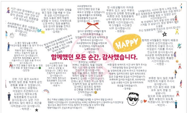 ÀÌ·¯ÇÑ ¸ñÇ¥¸¦ ÀÌ·ï°¡±â À§ÇÑ ÇÙ½ÉÀü·«À¸·Î, AIA»ý¸íÀº '»ç¶÷'¿¡ ÁýÁßÇÑ´Ù. ÇÙ½ÉÀÎÀ縦 ²ÙÁØÈ÷ À¯Ä¡Çϰí, À̵éÀÇ ¼ºÀåÀ» Áö¿øÇÔÀ¸·Î½á ±â¾÷ÀÇ Áö¼Ó°¡´ÉÇÑ ¼ºÀåÀ» µµ¸ðÇϱâ À§ÇÔÀÌ´Ù. AIA»ý¸íÀº ±×°£ ´Ù¸¥ ¿Ü±¹°è ±â¾÷µé°ú ¸¶Âù°¡Áö·Î ¼ö½Ãä¿ë À§ÁַΠä¿ëÀ» ÁøÇàÇØ ¿Ô°í, ½ÅÀÔº¸´Ù´Â °æ·ÂÁ÷ ä¿ëÀ» Áß½ÉÀ¸·Î ÇÑ ÀÎÀçÀü·«À» ÆîÃĿԴÙ. ±×·¯³ª ½Ã°£ÀÌ Áö³ª¸é¼ »õ·Î¿î ½Ã°¢°ú ¾ÆÀ̵ð¾î¸¦ Áö´Ñ ÁִϾîµéÀÇ Á߿伺ÀÌ Á¡Â÷ Ä¿Á³´Ù. ÀÌ¿¡ AIA»ý¸íÀº ä¿ë¿¡ ´ëÇÑ ½Ã¼±À» ³ÐÈ÷°í, »õ·Î¿î ÀÎÀçÇ®À» ¸¶·ÃÇÔÀ¸·Î½á ä¿ëÀÇ ÁúÀ» ³ôÀÌ´Â 'ÀÎÅÏ½Ê ÇÁ·Î±×·¥'À» µµÀÔÇß´Ù. ![]() ¡ã AIA»ý¸í ÀÎÅϵéÀÌ ÀÎÅϽÊÀ» Á¾·áÇϸç, °¨»ç Çǵå¹éÀ» Àü´ÞÇß´Ù. °æÇèÀÇ °¡Ä¡¸¦ ³ôÀÌ´Â ÀÎÅÏ½Ê ÇÁ·Î±×·¥ ¼³°è AIA»ý¸íÀº °¢ ºÎ¼¿¡¼ ¼ö¿ä°¡ ¹ß»ýÇÒ ¶§¸¶´Ù »ó½Ã·Î ÀÎÅÏÀ» ä¿ëÇØ ¿ÔÀ¸³ª, ÀÎÅϵéÀÌ °æÇèÇÏ´Â ¾÷¹« ¼öÁذú ±³À°, Çǵå¹é ¼öÁØÀÌ ºÎ¼¸¶´Ù »óÀÌÇÏ´Ù´Â ÇѰ谡 ÀÖ¾ú´Ù. ÀÌ¿¡ ÀÎÅÏ¿¡°Ô Àü´ÞÇϰíÀÚ ÇÏ´Â ¸Þ½ÃÁö¸¦ º¸´Ù ¸íÈ®È÷ Çϰí, ÀϰüµÈ °æÇèÀ» Á¦°øÇϱâ À§ÇØ ÀÎÅÏÀ» ÅëÇÕÀûÀ¸·Î ä¿ëÇÏ°í °ü¸®ÇÒ Çʿ䰡 ÀÖ´Ù°í ÆÇ´ÜÇß´Ù. 2021³â ¼¿ï½Ã°¡ ÁÖ°üÇÑ '¼¿ïÇü ÀÎÅÏ ÇÁ·Î±×·¥'¿¡ Âü¿©Çϸç ÅëÇÕÇü ÀÎÅÏ½Ê ¿î¿µÀ» ½ÃÀÛÇß°í, ÀÌÈÄ 3³â°£ ¿î¿µ ³ëÇϿ츦 ÃàÀûÇÑ µÚ À̸¦ ¹ÙÅÁÀ¸·Î 2024³âºÎÅÍ´Â AIA»ý¸í¸¸ÀÇ µ¶ÀÚÀûÀÎ °æÇèÀ» Á¦°øÇϱâ À§ÇØ ÀÚü ÀÎÅÏ½Ê ÇÁ·Î±×·¥À¸·Î ÀüȯÇß´Ù. AIA»ý¸íÀÇ ÀÎÅÏ½Ê ÇÁ·Î±×·¥Àº ÀüȯÇü°ú üÇèÇüÀ¸·Î ³ª´² ¿î¿µµÈ´Ù. ÀüȯÇü ÀÎÅϽÊÀº »óǰ/°è¸® µî ƯÁ¤ Á÷¹«¿¡ ÇÑÇØ ½ÃÇàµÇ¸ç, üÇèÇü ÀÎÅϽÊÀº ¿µ¾÷, À繫, ¸¶ÄÉÆÃ, Å×Å©, ÀÎ»ç µî ÀÎÅÏ ¼ö¿ä°¡ ÀÖ´Â ºÎ¼¸¦ ´ë»óÀ¸·Î ¿î¿µµÈ´Ù. ƯÈ÷ ºÎ¼ ¼±Á¤ ½Ã ÀÎÅÏÀÇ ¿ª·® °³¹ßÀ» ¾î¶»°Ô Áö¿øÇÒ °ÍÀÎÁö¿¡ ´ëÇÑ ±¸Ã¼ÀûÀÎ °èȹÀ» ¼ö¸³ÇØ Á¦ÃâÇϵµ·Ï Çϰí ÀÖ´Ù. ¶ÇÇÑ ÀÎÅÏÀÌ °¢ ºÎ¼¿¡ ¹èÄ¡µÇ±â Àü, ÀÎÅÏ¿¡°Ô ±àÁ¤ÀûÀÎ °æÇèÀ» Á¦°øÇϱâ À§ÇØ ÁؼöÇØ¾ß ÇÒ OJT ¿î¿µ ¹æ¹ý, Áß°£ Á¡°Ë ¹æ¾È µî¿¡ ´ëÇÑ °¡À̵带 ºÎ¼ ³» ´ã´çÀÚ¿¡°Ô Á¦°øÇÑ´Ù. ÀÌ´Â ÀÎÅÏ Ã¤¿ëÀ» ´Ü¼øÇÑ Àη º¸ÃæÀÌ ¾Æ´Ñ, ÀÎÅÏ¿¡°Ô ÀÇ¹Ì ÀÖ´Â ¼ºÀå °æÇèÀ» Á¦°øÇÏ´Â ±âȸ·Î »ï±â À§ÇÔÀÌ´Ù. ÀåÀ±Èñ AIA»ý¸í Àλ纻ºÎ ä¿ëÆÀ ´ã´çÀÚ´Â "ÀÎÅÏ½Ê °úÁ¤¿¡¼ ±àÁ¤ÀûÀÎ ±â¾ïÀ» ³²±ä ÀÎÅϵéÀº Áï½Ã Á¤±ÔÁ÷À¸·Î ÀüȯµÇÁö ¾Ê´õ¶óµµ ÇâÈÄ AIA»ý¸íÀÇ Ã¤¿ë¿¡ Áö¿øÇϰųª AIA»ý¸í¿¡¼ÀÇ °æÇèÀ» ÀáÀçÀû Áö¿øÀڵ鿡°Ô ÀüÆÄÇÔÀ¸·Î½á AIA»ý¸íÀÇ ÀÎÀçÇ® Çü¼º¿¡ Å« µµ¿òÀ» ÁØ´Ù"¸ç "µû¶ó¼ ÀÎÅϵ鿡°Ô ¹Ðµµ ÀÖ´Â ¼ºÀå °æÇèÀ» Á¦°øÇÏ´Â °ÍÀ» ÃÖ¿ì¼± °úÁ¦·Î »ï´Â´Ù"°í ¹àÇû´Ù. Á¶Á÷ÀÇ ÀÏ¿øÀ¸·Î¼ ¼ºÀå °æÇè AIA»ý¸í¿¡¼´Â ¼·ù ½É»ç ÀÌÈÄ Çö¾÷°úÀÇ 1Â÷ ¸éÁ¢, HR°úÀÇ 2Â÷ ¸éÁ¢À» °ÅÃÄ ÀÎÅÏÀ» ä¿ëÇÑ´Ù. ÇØ´ç °úÁ¤À» ÅëÇØ ¼±¹ßµÈ ÀÎÅϵéÀº ÀÔ»ç ÀÌÈÄ 'New Employee Orientation'À̶ó´Â °øÅë ¿Âº¸µù °úÁ¤À» ¼öÇàÇÑ´Ù. ¿©±â¿¡¼´Â AIA±×·ì ¹× AIA»ý¸í¿¡ ´ëÇÑ Àü¹ÝÀûÀÎ Á¤º¸¸¦ ºñ·ÔÇØ º¸Çè ºñÁî´Ï½º, º¸Çè»çÀÇ ¿î¿µ ½Ã½ºÅÛ, °¢ ºÎ¼ÀÇ ¾÷¹« µî AIA»ý¸íÀÇ ÀÏ¿øÀ¸·Î¼ ¾Ë¾Æ¾ß ÇÒ ±âº» Áö½ÄÀ» Àü´ÞÇÑ´Ù. ¶ÇÇÑ º¸Çè¿¡ ´ëÇÑ ÀÌÇØµµ¸¦ ³ôÀÏ ¼ö ÀÖµµ·Ï ¿Â¶óÀÎ ·¯´×À» Á¦°øÇØ ºü¸£°Ô Á¶Á÷¿¡ ÀûÀÀÇÒ ¼ö ÀÖµµ·Ï µ½´Â´Ù. ÀÌÈÄ¿¡´Â °¢ ÆÀ¿¡ ÅõÀԵо÷¹« °æÇèÀ» ½×´Â´Ù. À̶§ »õ·Î¿î ¾÷¹«¿Í ÆÀ¿¡ Àß ÀûÀÀÇÒ ¼ö ÀÖµµ·Ï ¸àÅ並 ¹èÁ¤Çϰí Àִµ¥, °¢ ÆÀ ³»¿¡¼ ÇùÀǸ¦ °ÅÃÄ ¼±Á¤µÈ ¸àÅä´Â ÀÎÅÏ½Ê Àü °úÁ¤¿¡¼ ÀÎÅÏÀÇ ¿øÈ°ÇÑ ¾÷¹«¸¦ µ½´Â´Ù. ´õºÒ¾î ¸àÅäµé¿¡°Ô´Â Ȱµ¿ Áö¿øºñ¸¦ Áö±ÞÇØ ¾÷¹« Áö¿ø»Ó¸¸ ¾Æ´Ï¶ó ÀÎÅϰú ÇÔ²² ³×Æ®¿öÅ·ÇÏ¸ç µ¿·á·Î¼ ÇÔ²² ¼ÒÅëÇÒ ¼ö ÀÖµµ·Ï Çß´Ù. À̿ܿ¡µµ CHRO¿Í ÇÔ²²ÇÏ´Â ·±Ä¡ µîÀ» ÅëÇØ ÁÖ±âÀûÀ¸·Î ÀÎÅϵé°ú ±³·ùÇÏ¸é¼ ±×°£ÀÇ ¾Ö·Î»çÇ×À̳ª ºÎ¼ »óȲ µî¿¡ ´ëÇØ ´ëȸ¦ ³ª´©°í, ÇâÈÄ Ã¤¿ë¿¡ ÀÖ¾î¼ µµ¿òÀÌ µÉ ¸¸ÇÑ Á¤º¸¸¦ °øÀ¯Çϸç, ÀÎÅϵéÀÌ ´Ü¼øÇÑ 'üÇè'ÀÌ ¾Æ´Ñ '¼ºÀå'ÀÇ ½Ã°£À» °¡Áú ¼ö ÀÖµµ·Ï ¼¼½ÉÇÏ°Ô »ìÇǰí ÀÖ´Ù. ´õºÒ¾î AIA»ý¸í¿¡¼´Â ÀÎÅϵéÀÌ ÀÔ»ç Ãʱ⠳¸¼± ȯ°æ¿¡¼ ´À³¥ ¼ö ÀÖ´Â ¿Ü·Î¿òÀ» ÇØ¼ÒÇØ ÁÖ°íÀÚ ÀÔ»ç µ¿±â °£ ±³·ùÇÏ´Â 'Get To Know Each Other' ¼¼¼Ç°ú ³×Æ®¿öÅ· ÀÚ¸®¸¦ ¿î¿µÇÑ´Ù. ¶ÇÇÑ ¹Ì´Ï ¿Ã¸²ÇÈ 'AIA Build Up Game'°ú °°Àº ¸ôÀÔEngagement µ¶·Á Ȱµ¿, 'Á¤¿ø °¡²Ù±â Ä·ÆäÀÎ'°ú °°Àº ESG Ȱµ¿, 'Year-End Staff Celebration'°ú °°Àº »ç³» ´Ù¾çÇÑ Çà»ç¿¡µµ ÀÎÅÏÀÌ